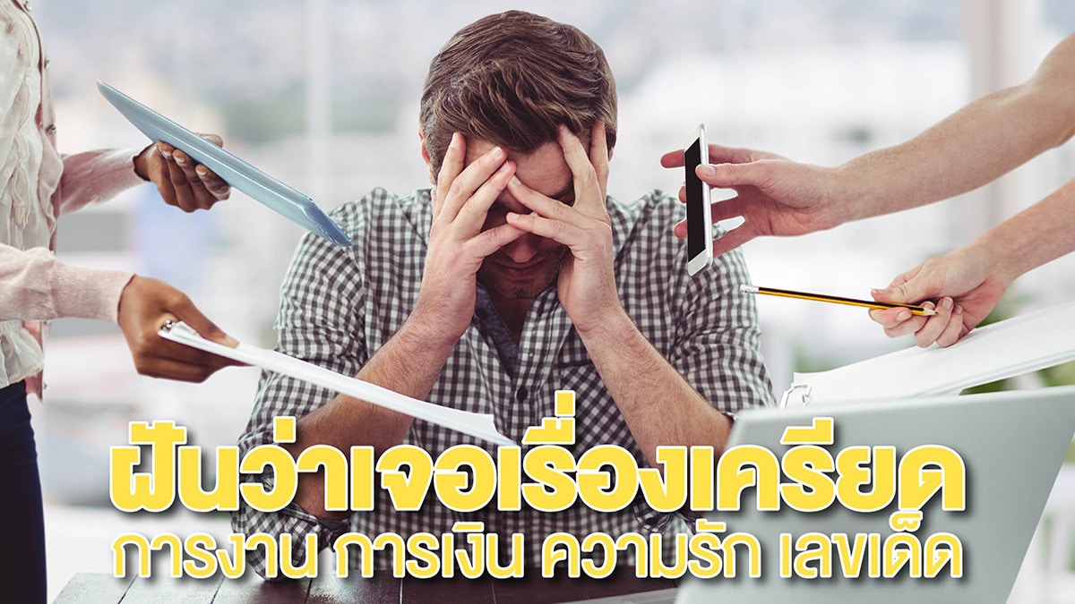 สำหรับคนที่ ฝันว่าเจอเรื่องเครียด ช่างเป็นฝันที่น่าสนใจจริงๆ แต่ไม่แน่ว่าการที่เราฝันว่าเจอเรื่องเครียดนั้นอาจจะมีใครบางคนดลบันดาลให้เราฝันว่าเจอเรื่องเครียด เพื่อที่จะบ่งบอกอะไรบางอย่าง หรืออาจจะมีคำทำนายที่น่าสนใจในอนาคตก็เป็นไปได้นะ ช่วงนี้คุณมีโอกาสจะได้พบกับเพื่อนเก่าในงานสังคม หรืองานสังสรรค์ต่างๆ อีกด้วย ช่วงนี้หากคุณต้องการเสี่ยงโชคสามารถเสี่ยงได้เลย คุณมีเกณฑ์ที่จะได้รับโชคลาภจากการเสี่ยงโชคเป็นอย่างดี การที่คุณคิดไว้จะได้รับผลอย่างเต็มที่สมตามที่ตั้งความหวังเอาไว้เลยล่ะ คนที่มีธุรกิจส่วนตัวก็ให้ระวังการมีปากเสียงกับเพื่อนธุรกิจเดียวกันหรือลูกน้องบริการของตน ซึ่งจะส่งผลให้งานไม่ราบรื่นติดขัดและล่าช้าได้นั่นเอง