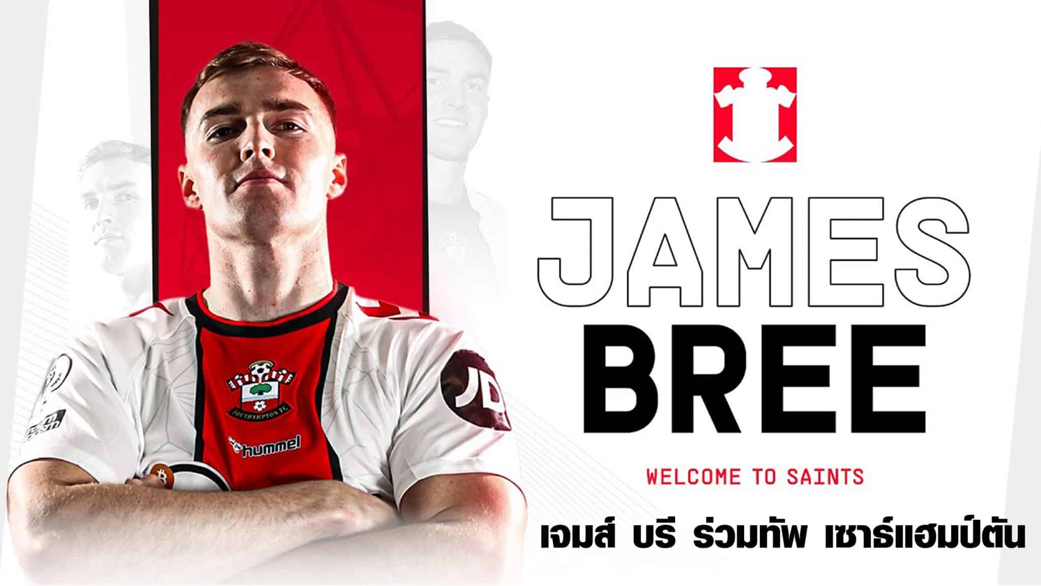เจมส์ บรี (James Bree) แบ็กขวาจอมบุกจาก ลูตัน ทาวน์ สโมสรระดับ แชมเปี้ยนชิพ แข้งใหม่รายล่าสุด นักบุญ เซาธ์แฮมป์ตัน สโมสรในพรีเมียร์ลีก อังกฤษ หลังคว้าตัว ด้วยค่าตัว 750,000 ปอนด์ หรือประมาณ 30.75 ล้านบา พร้อมเซ็นสัญญาค้าแข้งในถิ่น เซนต์ แมรี่ส์ สเตเดียม เป็นเวลา 3 ปีครึ่ง หรือจนกระทั่งถึงสิ้นเดือนมิถุนายน ปี 2026