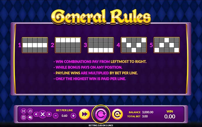 เป็นเกมสล็อตออนไลน์ กลุ่มเพรช ที่ถูกออกแบบให้มีกฎและกติกาและวิธีการเล่น ที่ทำให้เข้าใจได้ง่าย และไม่ซับซ้อน มีรูปแบบ เพย์ ไลน์ ทั้งหมด 5 แบบ เกมนี้มีความผันผวนปานกลาง และจ่ายเงินอย่างสม่ำเสมอ และช่วงของการจ่ายเงิน แตกต่างกันไป จากต่ำไปสูงมาก การจ่ายจะนับจาก ซ้าย ไป ขวา บนแถวการจ่ายเงิน การคิดเงินจะคิดจากการชนะทั้งหมด คูณด้วยเดิมพันต่อแถว มาในธีม ของตัวตลก หรือ ตัวโจ๊กเกอร์ ซึ่งมีสีสัน และกราฟฟิกในเกมที่ถูกสร้างมาให้มีความคลาสสิก